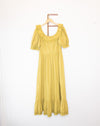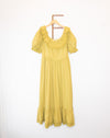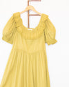 The only thing prettier than this ruffled, Basque waist, puff sleeve Doen "Lupine" maxi dress is its fantastic color. Doen calls it Oregano, but we think it's perfectly dijon