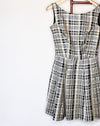 The perfect fit n' flare mini ready for all of your holiday party needs! In a glittery metallic plaid, this vintage French Connection dress has the sweetest neckline & is such a cute length.