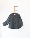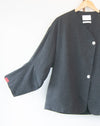 This USA made Lauren Manoogian Asymmetric Field Jacket is cut like a soft piece of origami. Designed for structure and volume, its ultra-soft charcoal grey brushed cotton also makes it very cozy.