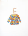 Quilted to puffy perfection, this boxy, 3/4 length sleeve cotton Osei Duro structured sweater is vibrantly printed and was beautifully made in Ghana.