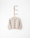 A classic chunky cropped cardigan from our favorite Spanish knitwear brand, babaa! Love those rich chocolate brown buttons in contrast to the sweet speckled light grey.