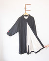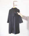 A gorgeous linen overcoat by Micaela Greg. You'd think this would be for fall transition weather, but the heavy sherpa lining takes you right into winter. This mid weight trench features raglan sleeves, front slanted welt pockets, a pointed collar and a button front hidden placket.