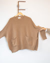 From Italian luxury knitwear brand, Ma'ry'ya, this sweater is so cozy and that perfect shade of taupe that will go with any and every outfit. Has a snap on the side slit, which when closed, gives it a cool keyhole detail. We love the rolled neck & the ribbed hem/cuffs!