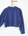 Love the thick collar on this Acne crewneck. Slightly cropped with side zip detailing that looks great both zipped or unzipped! Has a small fade spot on the upper left shoulder.